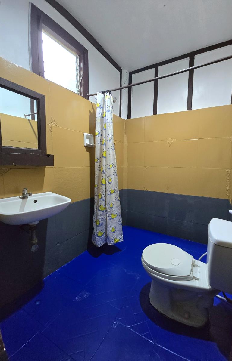 Spacious family room surrounded by lush gardens, featuring a private balcony with relaxing outdoor views. Perfect for families or small groups. Includes air-conditioning, hot & cold shower, cable TV, and daily breakfast for guests.