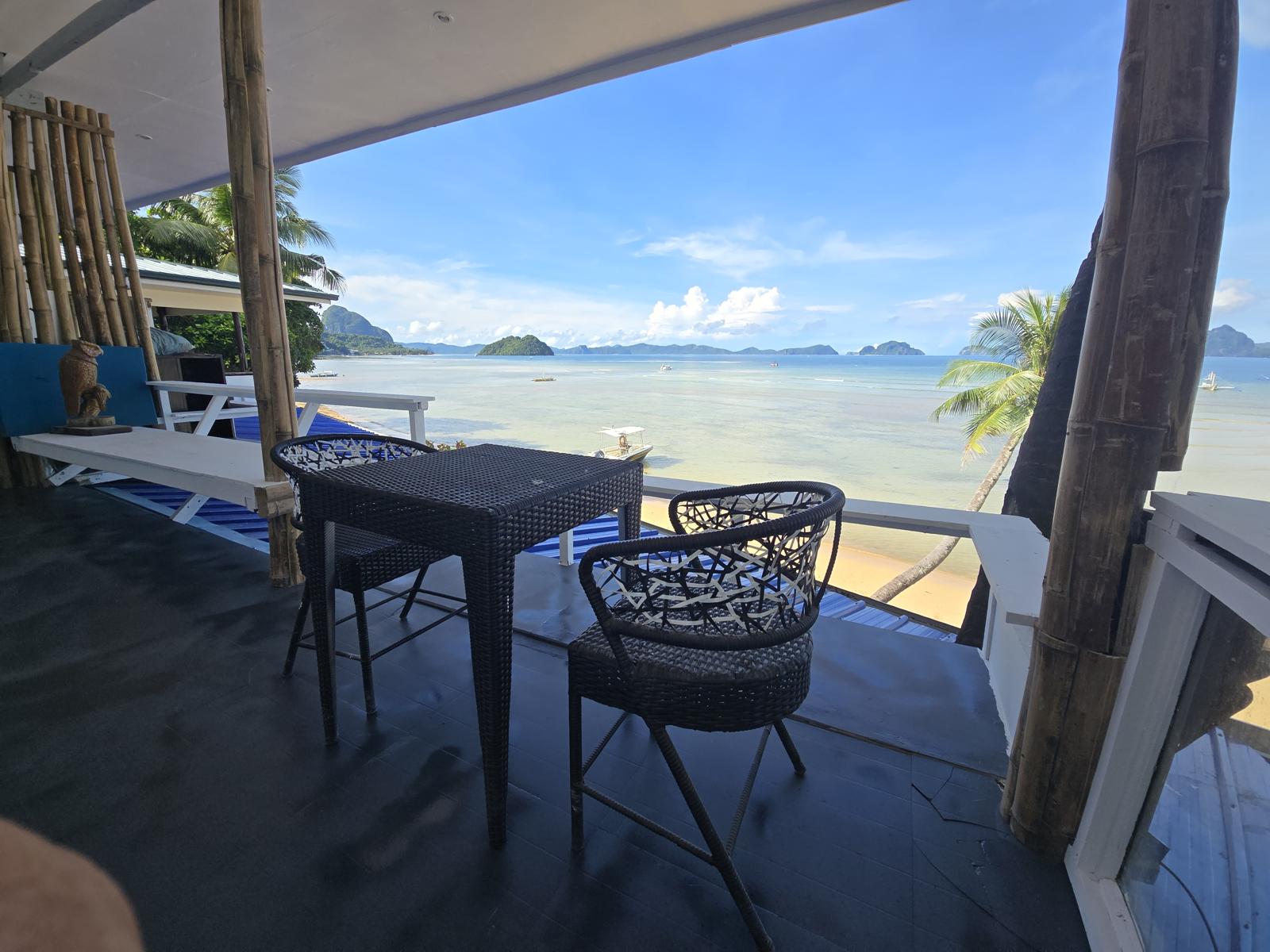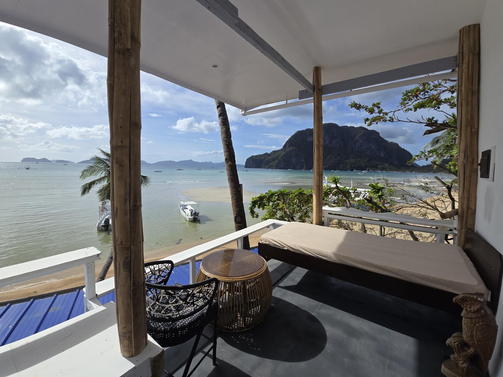 Spacious family room facing the sea, offering a private balcony with breathtaking ocean views. Perfect for families or groups who want to enjoy El Nido’s beachside charm. Includes air-conditioning, hot & cold shower, TV, and daily breakfast for four guests.